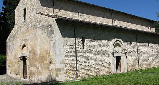 La Chiesa di San Pietro ad Oratorium si trova nei pressi di Capestrano, immersa in un bosco sulla riva sinistra del fiume Tirino, in un luogo particolarmente silenzioso e suggestivo. Sopra l’architrave del portale campeggia una scritta millenaria che narra delle sue origini, essa cita “a rege desiderio fundata anno milleno centeno renovata” (fondata dal re Desiderio, rinnovata nell’anno 1100), sicuramente il re longobardo più famoso del cristianesimo, avendo lasciato tracce in molti altri angoli italiani. Secondo la tradizione il sovrano longobardo avrebbe donato terreno e chiesa all’abate Attalo.