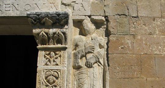 Compaiono altre iscrizioni, vegetali decorativi, figure geometriche e due figure identificate come San Vincenzo Diacono, il profeta Davide e un re coronato, probabilmente lo stesso Re Desiderio. Il profeta Davide indica un’iscrizione appena sopra che recita “sculptor imago apparuit ito insomnis hec” (tradotta come: “lo scultore decise questa sistemazione in seguito ai suoi sogni, durante i quali ne ebbe l’ispirazione”).