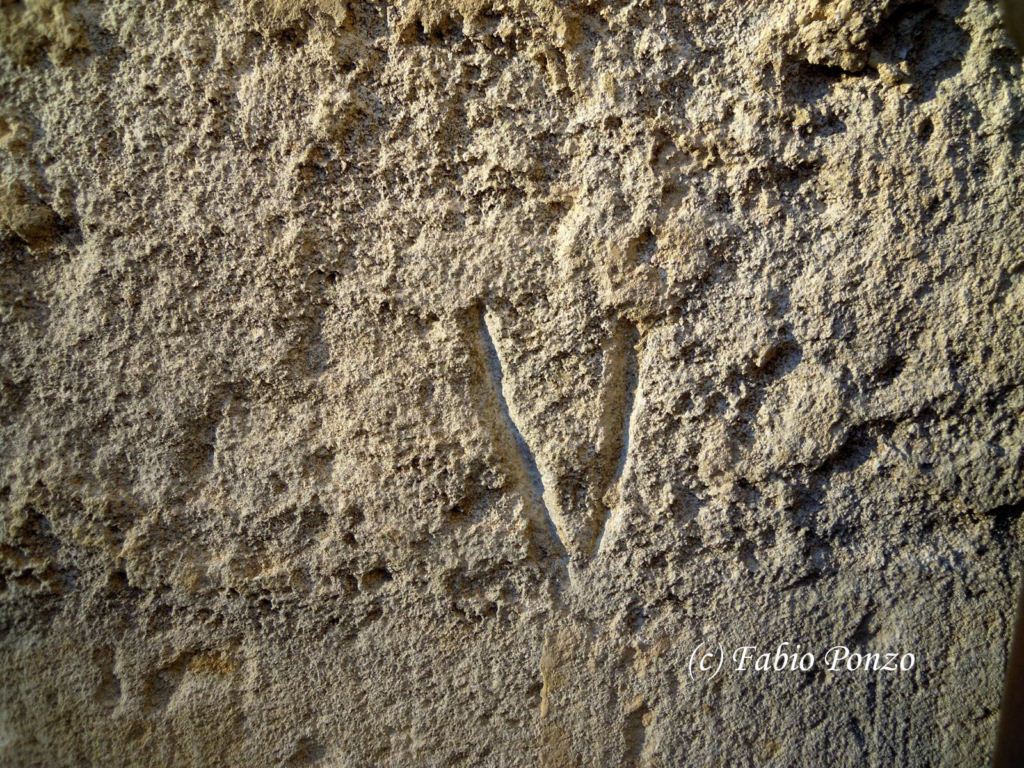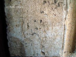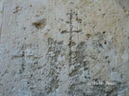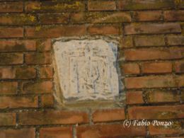 Sul muro esterno sono presenti alcuni simboli ad oggi senza interpretazione. Sono due “M”, una con un ricciolo spinato in cima e l’altra attraversata da una S.