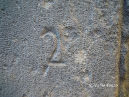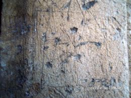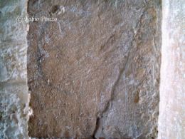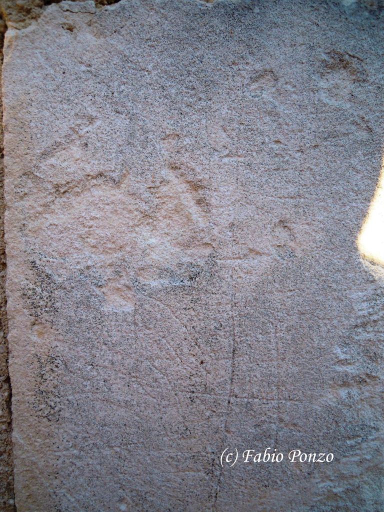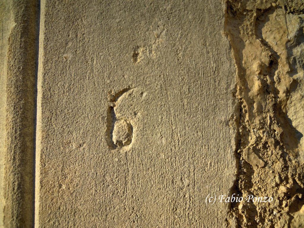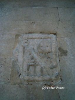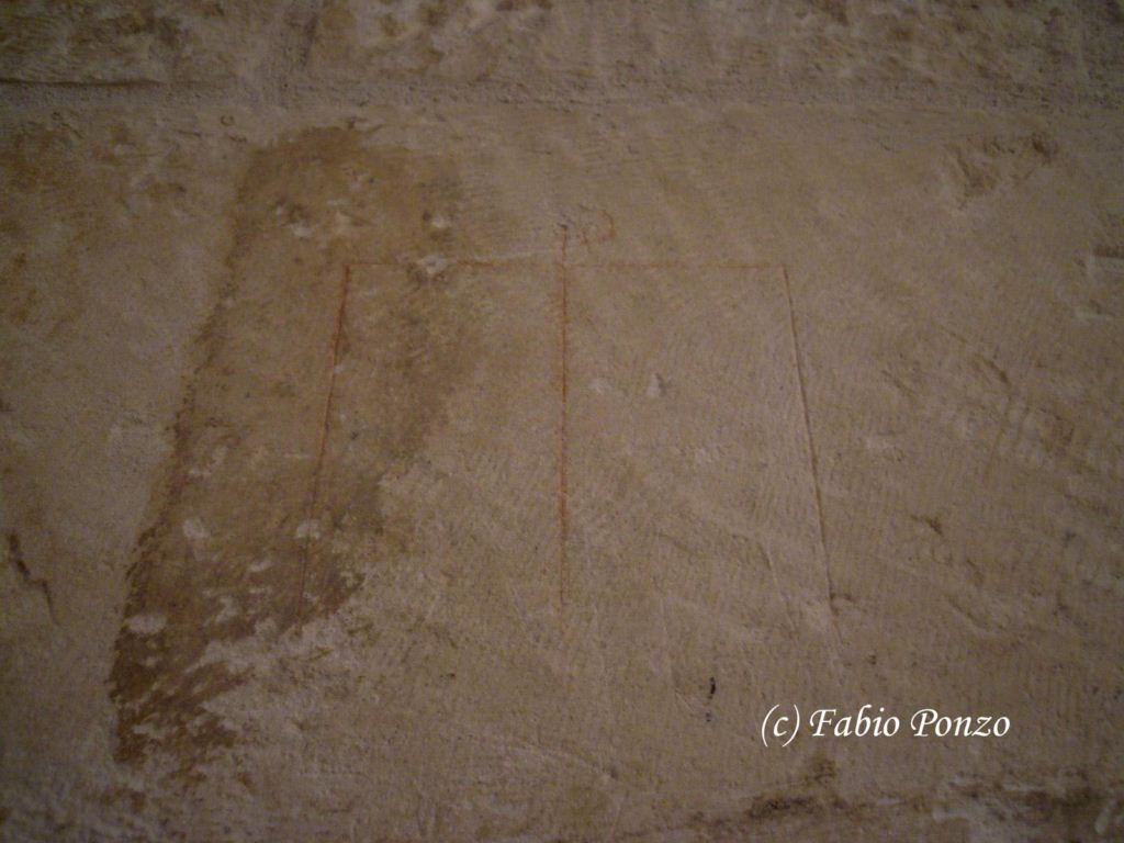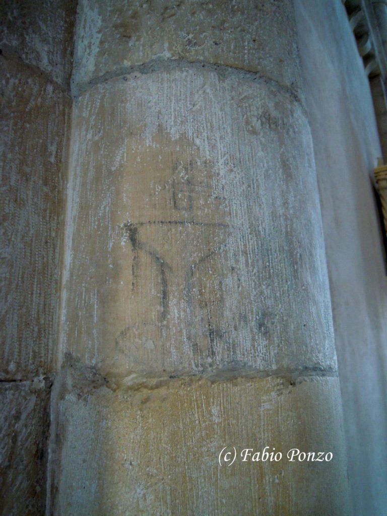 E’ incisa una intricata griglia, presente in alcune chiese, il significato è ancora ignoto. C’è chi la attribuisce alla piattaforma di un gioco, chi la avvicina alla scacchiera e quindi ai Templari