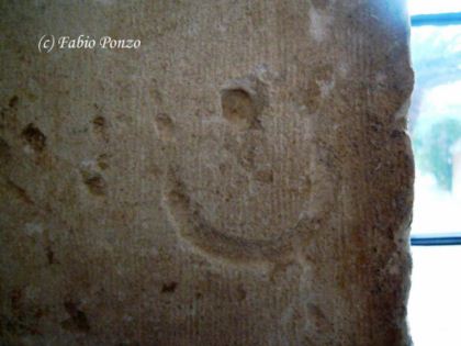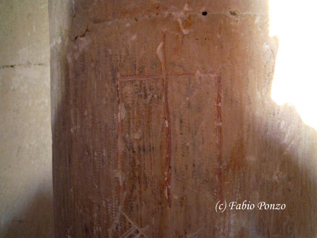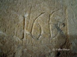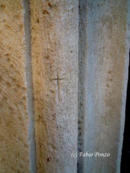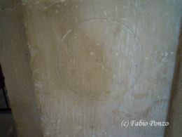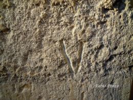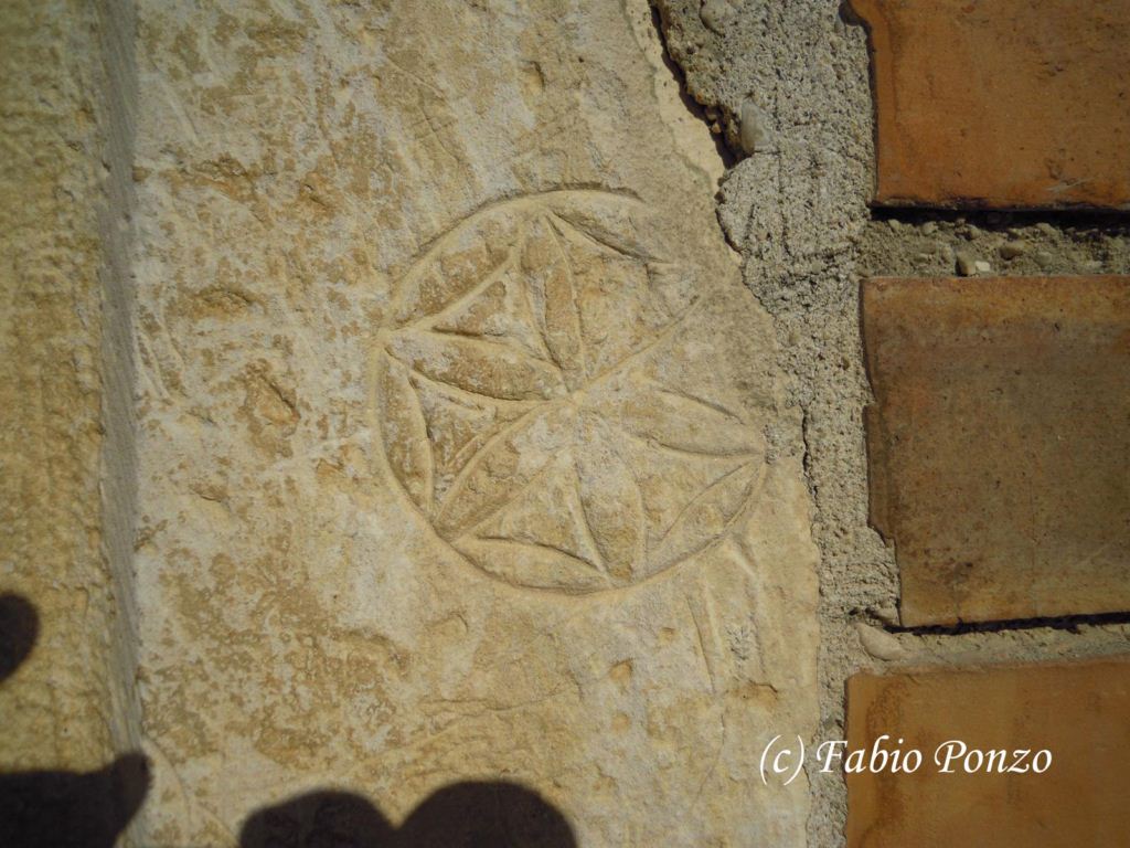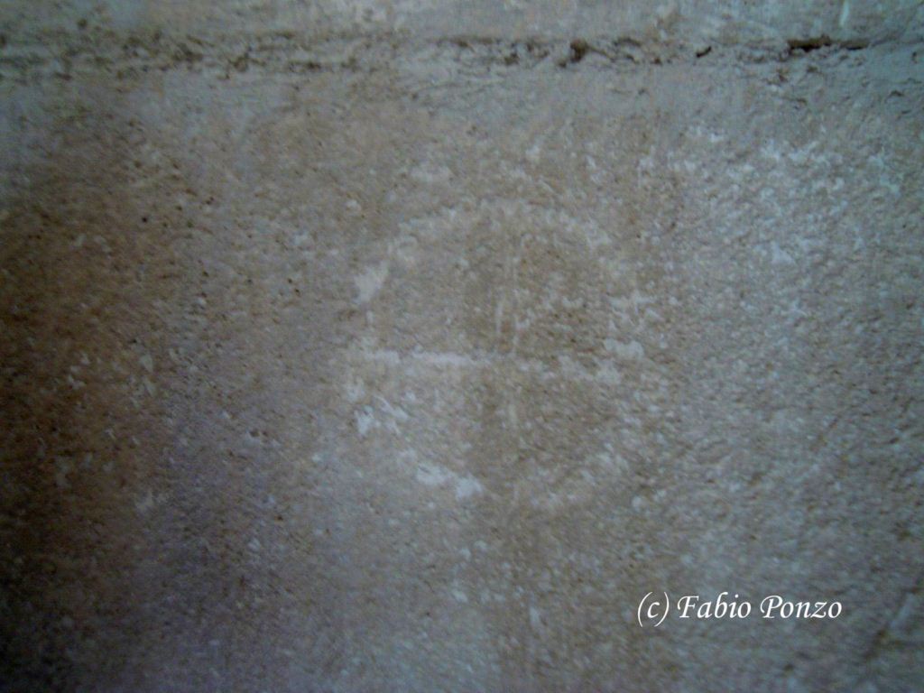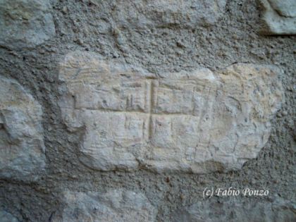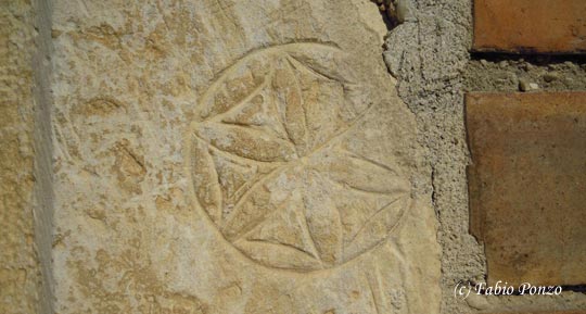 Sul muro della chiesa è scolpito il “centro sacro” simbolo che indicava la “presenza di Dio”. Solitamente veniva posizionato in ambienti di forte energie telluriche…