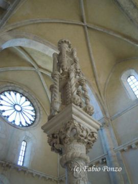Le colonne sono una diversa dall’altra, quasi ognuna con una propria personalità. C’è quella più sobria, quella più decorata, quella liscia e quella decorata, ma tutte in qualche modo armoniche e simmetriche. Ce n’è solamente una ad essere particolarmente “strana” perchè “storta”, partirebbe cioè a spirale per poi continuare diritta e interrompersi con un nodo.