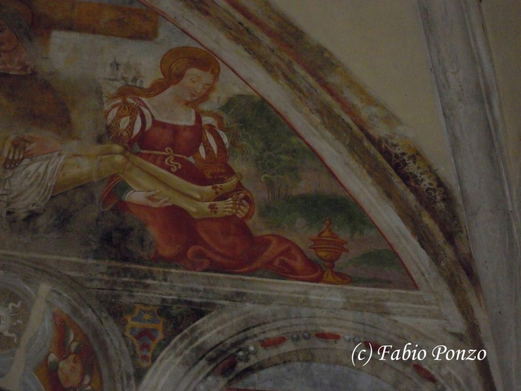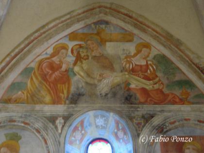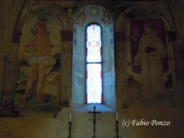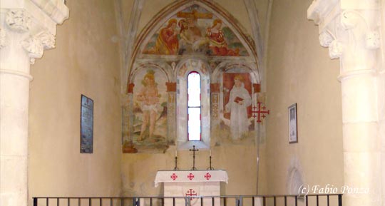 Nella chiesa la cappella di San Rocco, a destra dell’ingresso a nord, è di proprietà dell’Ordine equestre del Santo Sepolcro di Gerusalemme e viene ancora oggi gestita dall’ordine, di cui è ben visibile lo stemma. Sulla parete emergono bellissimi affreschi tra cui una deposizione con Gesù tra le braccia di Maria con accanto San Giovanni Battista e Santa Maria Maddalena in ricchi abiti rinascimentali, quasi fosse una nobile, con ai due lati San Sebastiano e San Bernardo da Chiaravalle.