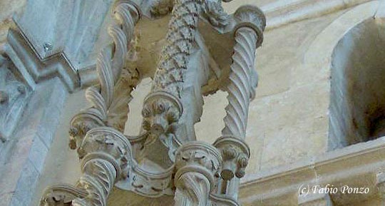 Queste colonnine sarebbero metafora dei 12 apostoli ma l’unica colonna con il nodo sarebbe anche l’unica asimmetrica. Una tale diversità rivelerebbe forse la colonna malata, Giuda? Oppure, diversa dalle altre, indicherebbe un segreto, l’apostolo che Gesù amava? La “colonna annodata” è ricorrente in molte chiese e nella simbologia cristiana potrebbe rappresentare l’Immortalità dell’Anima. La colonna, elemento portante di un edificio che rappresentava anche la materialità, annodandosi sarebbe divenuta “spirito”, innaturale, perdendo il suo corpo di sostegno. Quindi riguarda un elemento che ricondice allo spirito.