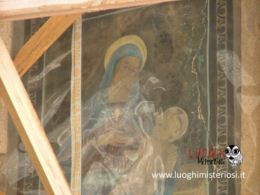 Sulle pareti appoggiano resti di antichi affreschi del XV secolo, tra cui una Crocifissione di scuola umbro-abruzzese.