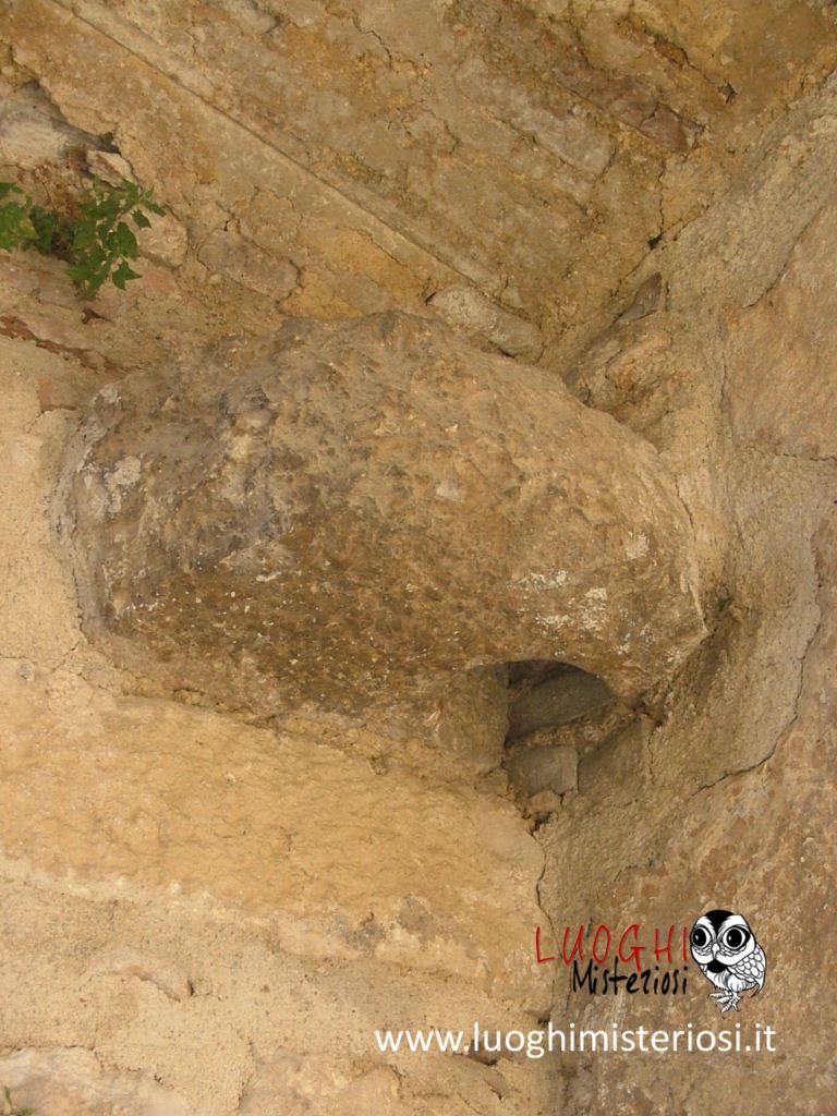 Solitamente scolpito sulla pietra è stato ritrovato anche su strutture preistoriche e megalitiche. Spesso utilizzato dai Cavalieri Templari per segnare luoghi sacri in cui scorrerebbero nel sottosuolo le energie della Terra. Non a caso, questo borgo potrebbe essere stato frequentato dai cavalieri dell’Ordine.