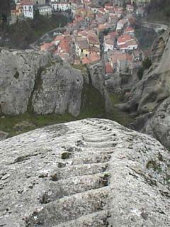 A Castelmezzano rimangono le rovine di un’antica fortezza normanna raggiungibile con una stretta e ripida scalinata che sale verso il cielo.