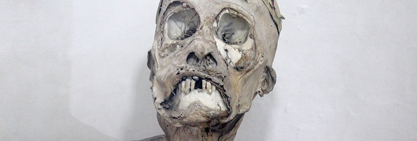Anche in Italia, però, vi sono delle mummie e le troviamo in diversi luoghi. Ci sono città e paesi nei quali sono state rinvenute mummie con caratteristiche davvero particolari. Nelle catacombe di Palermo, ad esempio, già a partire dal 1500 sono conservate centinaia di mummie, la più particolare delle quali è la piccola Rosalia Lombardo morta a soli 2 anni nei primi anni del 1900 e che oggi sembra ancora muovere le sue piccole palpebre. A Ferentillo (Tr), invece, vi un cimitero dove sono presenti mummie “naturali” il cui stato di conservazione, sembra sia dovuto alla presenza di vari microrganismi che, unitamente alla particolare areazione dei locali, riesca a preservare i cadaveri dalla putrefazione.