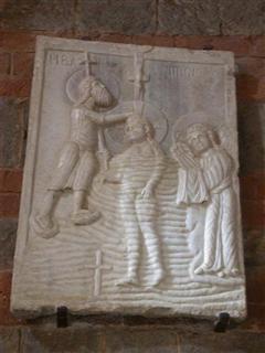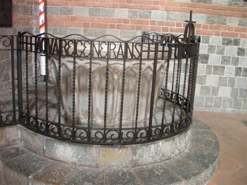 L’ANTICA LASTRA BATTESIMALE SUL TEMPIO PAGANO