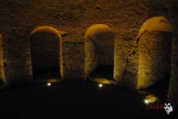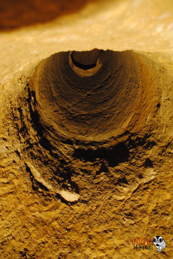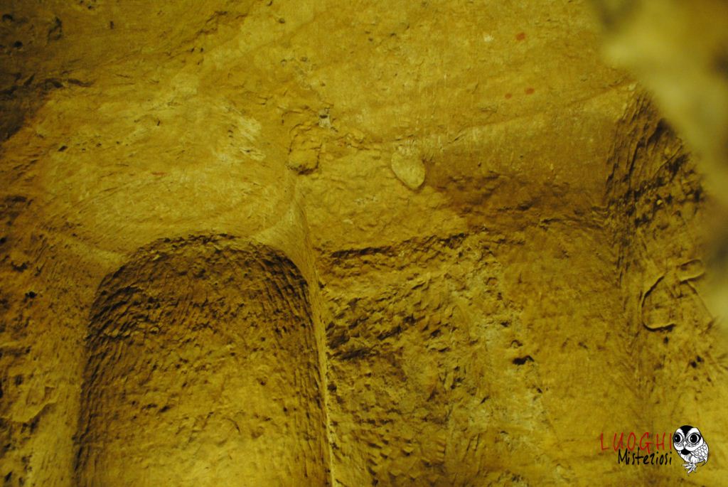 Ma esse hanno un’origine ben più antica e per diversi motivi la loro funzione non può limitarsi a quello di semplice “cantina”. Il fatto di essere così complesse nella loro forma strutturale, con nicchie scavate in modo regolare ed identico, con stanze circolari perfette, con la presenza di colonne non per forza “portanti” e di pozzi che garantivano un ricambio d’aria adeguato per una certa abitabilità, ci obbliga ad interrogarci ulteriormente sulla loro autentica funzione. Sicuramente questa perfezione esecutiva porta alla teoria sul loro utilizzo a luogo di culto.