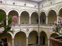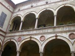 Il cortile è circondato da un porticato con un lato chiuso per seguire la moda di Versailles del tempo che imponeva un corridoio lungo con la fuga di salotti, cosicché guardandolo, si convergeva in un unico punto di fuga. Questa moda, seguita spesso in Italia, ha però mutato l’assetto di molti palazzi e castelli facendo così perdere la loro originalità.