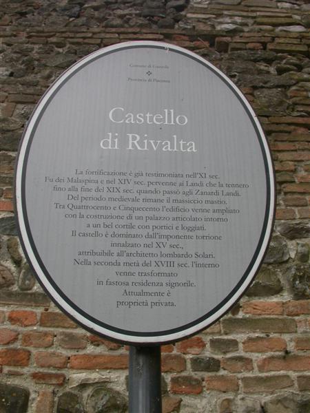 La fortificazione del castello di Rivalta è già testimoniata nell’XI secolo. Fu possedimento dei Malaspina e nel XIV pervenne ai Landi che ne conservarono il dominio fino alla fine del XIX secolo quando il maniero passò alla famiglia Zanardi Landi. Il castello era molto conteso perché aveva la particolare caratteristica di essere riparato dal fiume da ben due lati e per questo ha assunto un nobile nome,