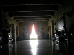 Un tempo era la sala del Giuoco della Guerra. Il tavolo era simile a quello da biliardo, il gioco tipo Risiko. I nobili se ne stavano seduti e spostavano con lunghe stecche le pedine. Questo gioco era proibito, perché fortemente d’azzardo, i nobili scommettevano, denari, terre, onori e vite delle mogli. In questa stanza abbiamo Bacco e Cerere (fertilità)