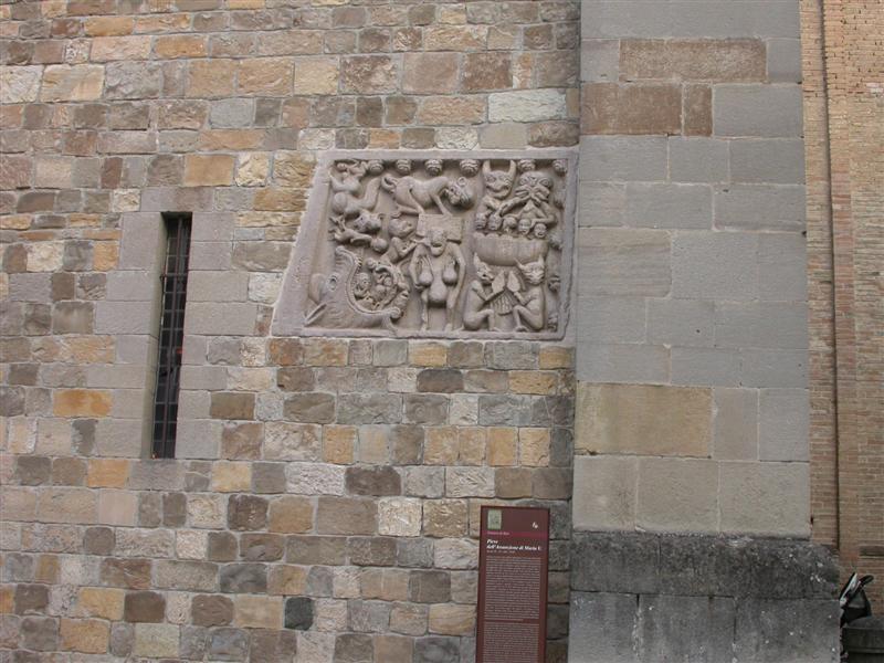 Per fortuna nel 1942 vennero rimosse le aggiunte settecentesche e fu ripristinata almeno la facciata. In facciata vennero inseriti frammenti scultorei dell’inizio del XIII secolo, alcuni dei quali provenienti dal pulpito smembrato, come i due telamoni, la lastra con la scena di lotta di Giacobbe con l’angelo (Antico Testamento) e la lastra dei dannati sottoposti alle pene infernali.