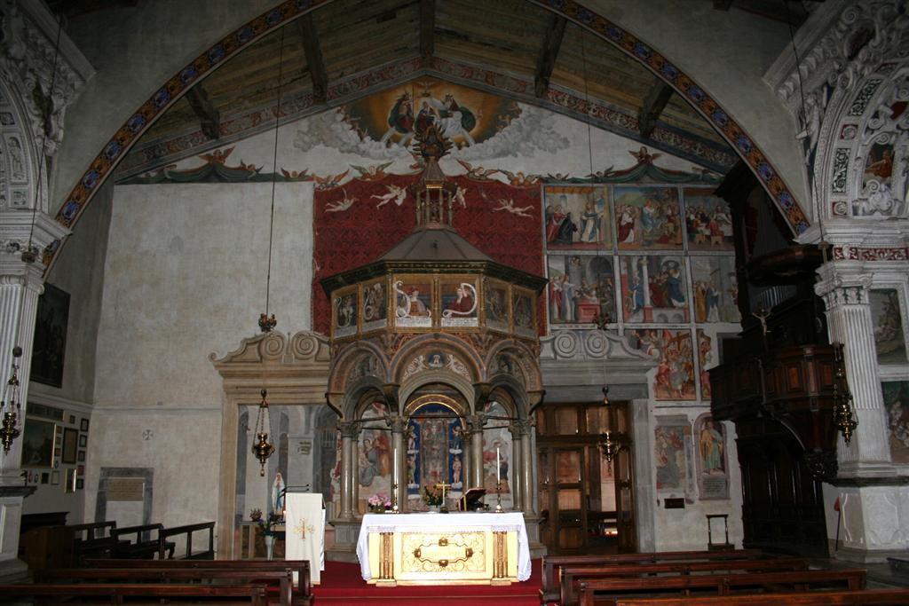 Presenta una struttura cinquecentesca, la facciata è sobria e l’interno è a un’unica navata. L’altare è circondato da un tempietto ottagonale in marmo bianco, alla cui sommità vi è Dio mentre benedice. A decorazione del tamburo, vi sono le Sibille con in mano un cartiglio, al suo interno vi è rappresentata la vita di Maria.