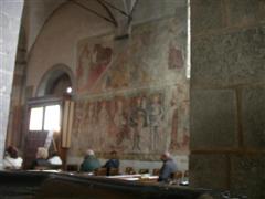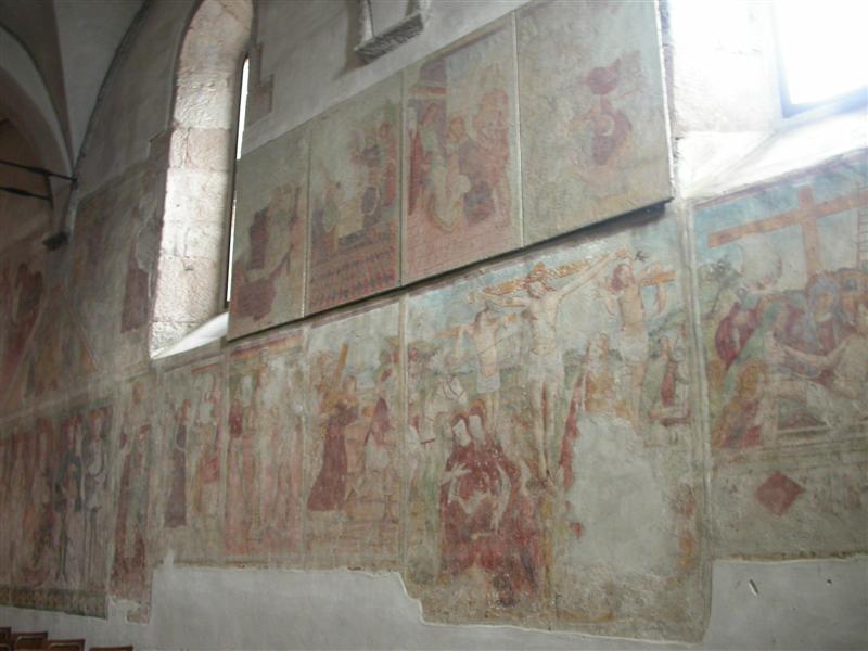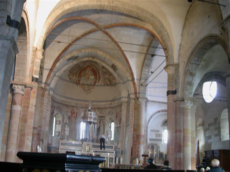 L’interno conserva splendidi affreschi del XIII secolo che riportano le storie della Passione di Cristo e della vita di S. Giulio, mentre nell’abside sopra l’altare abbiamo un bellissimo Cristo Pantocratore nella mandorla.