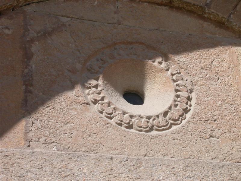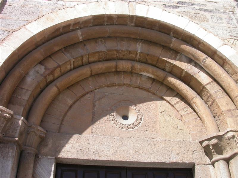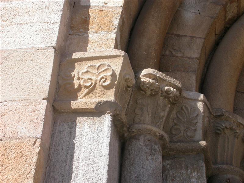 La porta laterale ha una decorazione molto più ricca di quella della facciata, probabilmente perchè un tempo la piazza principale era posizionata al lato della chiesa, dove si affacciava questo portale, sul lato sud riscaldato e illuminato dal sole, dato che questa una zona non era particolarmente calda.