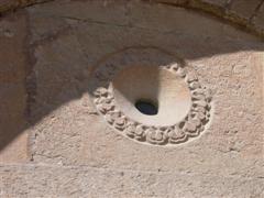 Abbiamo ancora una volta un esempio di chiesa cristiana costruita sopra un antico tempio pagano. La particolarità, in questo caso, è che la sostituzione del luogo da pagano a cristiano è stata evidenziata da questa epigrafe. Quasi certamente è stato fatto per ricordare e mostrare che il Cristianesimo avrebbe sopraffatto le antiche religioni, schiacciandole.