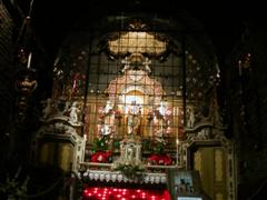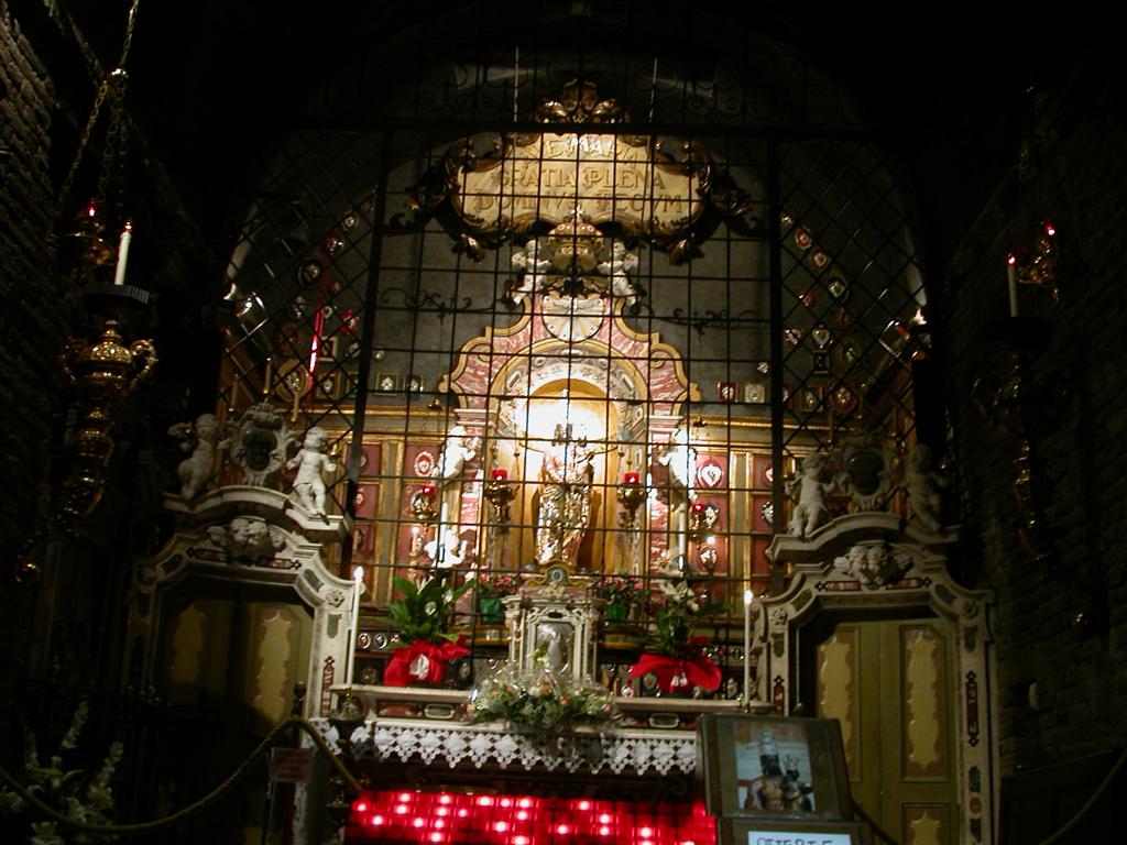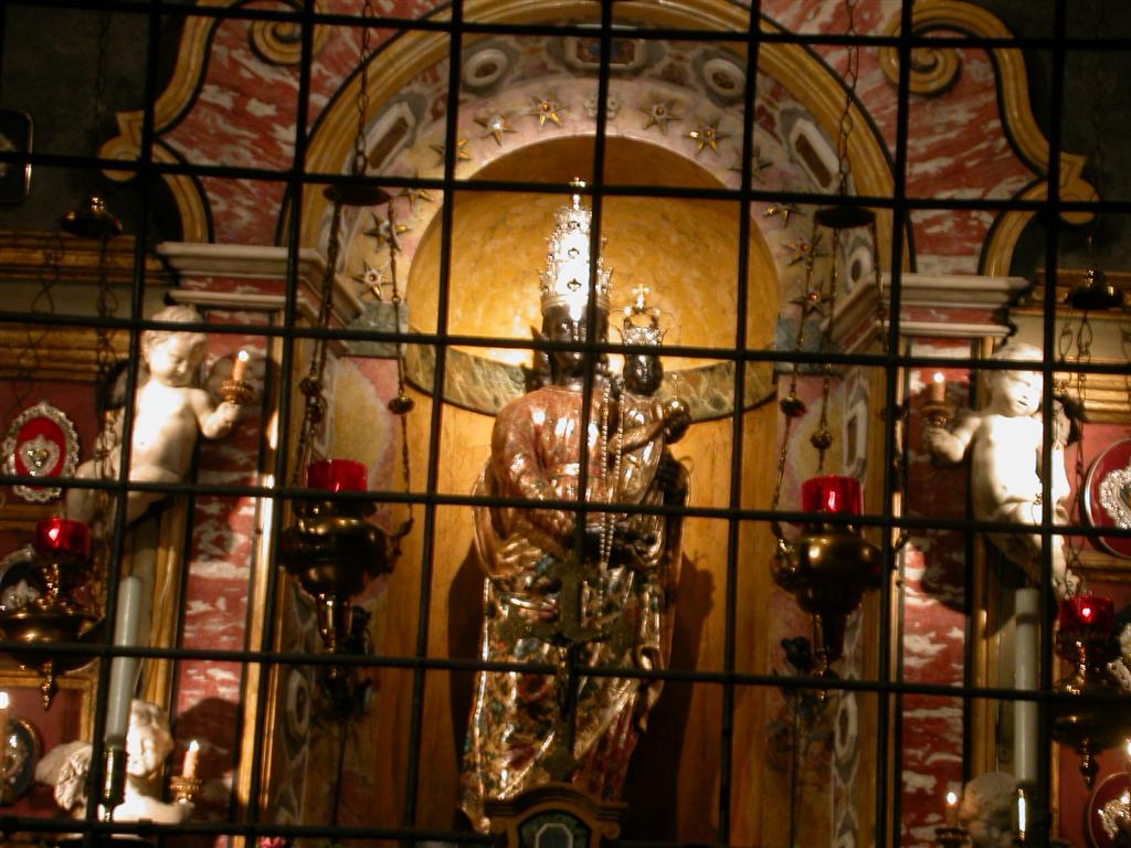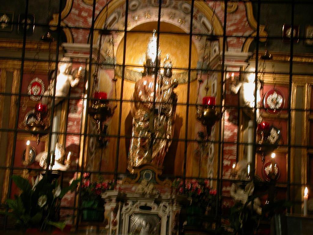 All’interno della chiesa, oltre per l’appunto la casa di Nazareth, abbiamo anche la Madonna Nera, simile a quella di Loreto.
