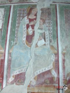 Santa Maria in Binda è una chiesetta modesta, in un campo agreste, davanti alla quale vengono sempre parcheggiate delle biciclette di turisti domenicali che si fermano per una piccola pausa di ristoro. Non ha pretese, piccola nelle dimensioni e con la facciata rovinata. Eppure per secoli ha conservato queste rare immagini, che sanno ben comunicare un alto valore mistico. E’ proprio vero che il fiore più bello e profumato non lo si trova in una serra, ma può sbocciare solitario in un campo di grano.