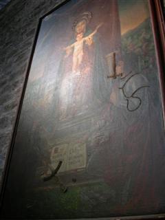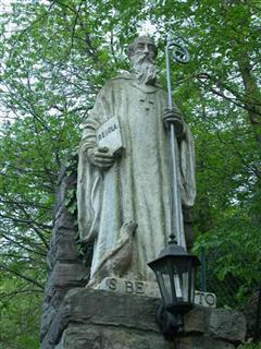 Infine un’immagine di San Benedetto, che fugge da una donna, l’ultima sua vera tentazione, alla quale riuscì a sfuggire solo gettandosi nudo tra i rovi e le ortiche!
