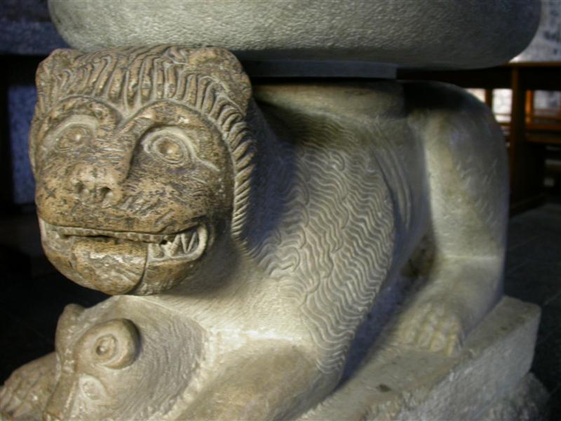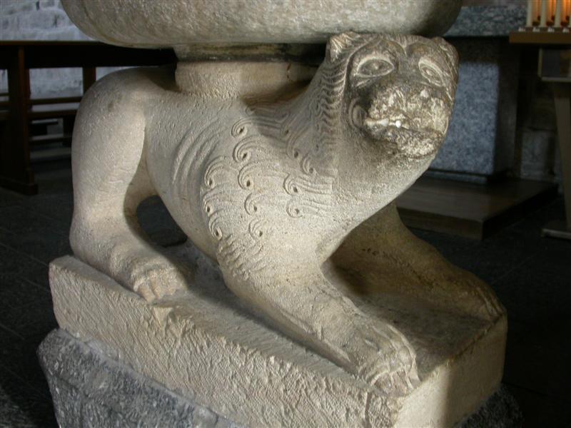 La Chiesa è a pianta irregolare e ha due bellissimi leoni marmorei a guardia dell’entrata, oggi un po’ tristemente trasformati in acquasantiere, ma un tempo veri e propri guardiani della struttura, perché reggevano due imponenti colonne.