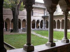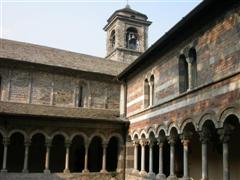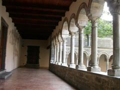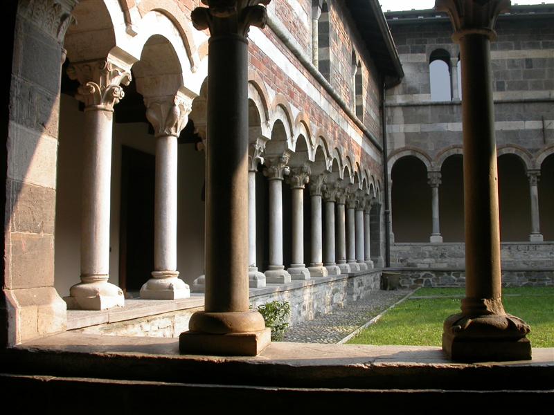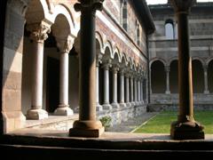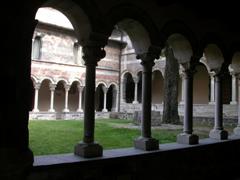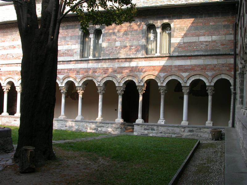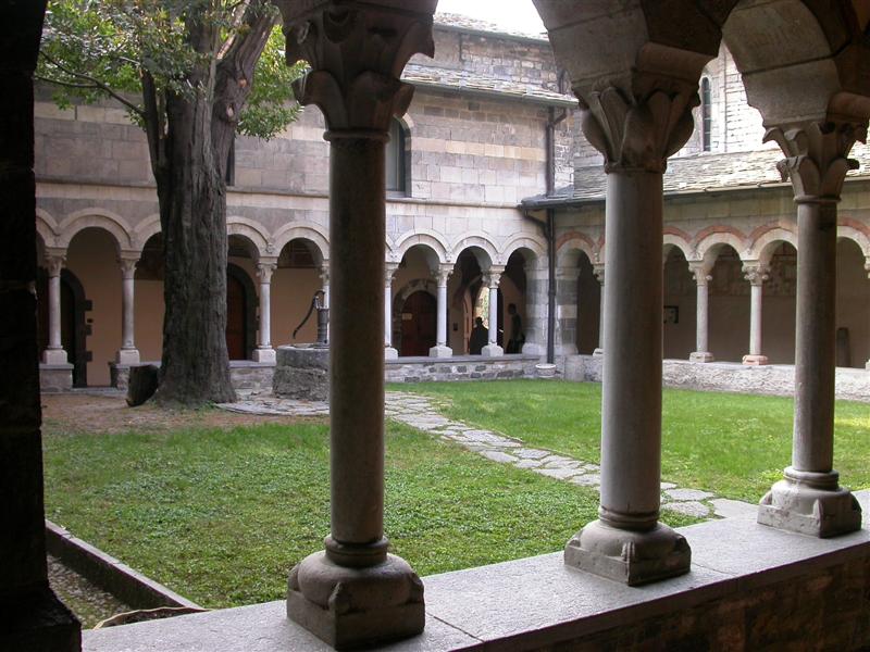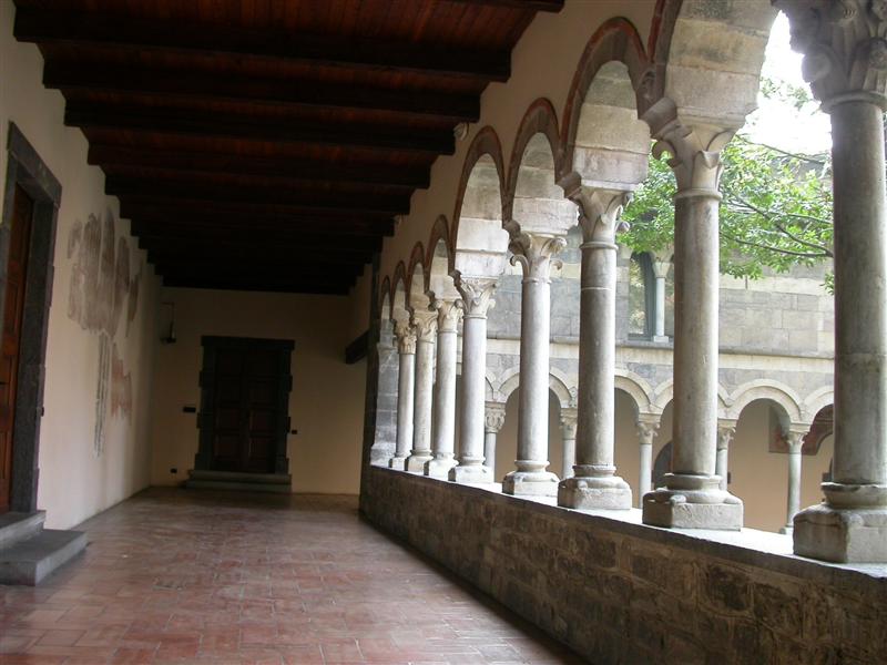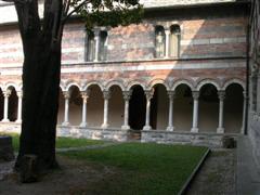 Suggestivo il chiostro, punto focale di tutti i monasteri, perché permetteva di “uscire all’aperto”, senza che i monaci realmente lo facessero, raccoglie ancora oggi degli affreschi originali raffiguranti scene di draghi e martiri, ma anche di un calendario figurato da contadini e scene campestri.