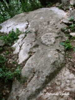 E’ necessario imboccare il sentiero della Rasa che diparte dall’edificio dei frati, addentrandosi nel folto bosco che avvolge la collina per incontrarlo. Dopo aver camminato per alcune decine di minuti, tra querce secolari, felci e rovi che imprigionano i resti (o meglio i ruderi) di antichi edifici ormai ingoiati dalla vegetazione, si arriva ad un gigantesco macigno posto proprio tra la mulattiera e il pendio.