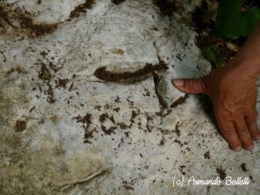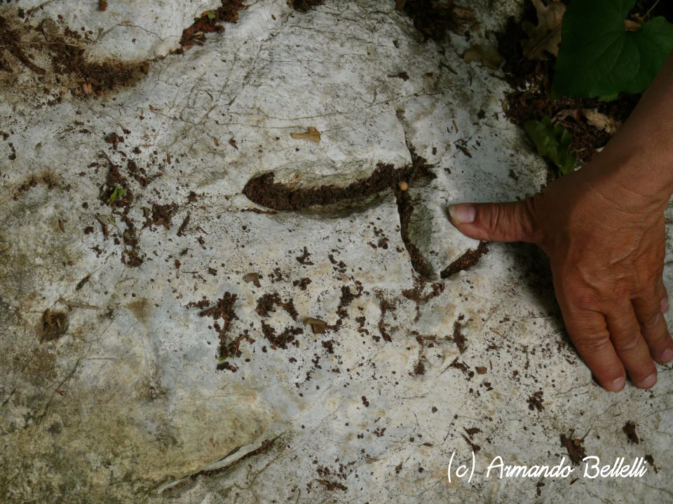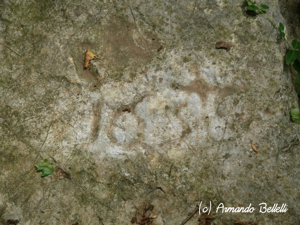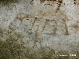 Oltre ad alcuni segni già visibili ad occhio nudo e alla già citata data, è apparsa agli occhi di Serena una gran quantità di segni realizzati dall’uomo! Numerose croci, scalfitte nella roccia un po’ ovunque, altre date (1640, 1655), un’invocazione al Figlio di Dio rappresentata dal simbolico “IHS”, Iesus Salvator Hominum, Gesù salvatore degli uomini e semi cancellata dall’erosione dell’acqua e del vento, quasi illeggibile, l’emblematica parola “diaboli”.