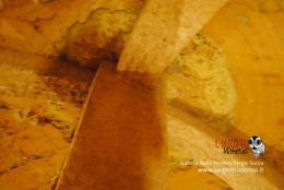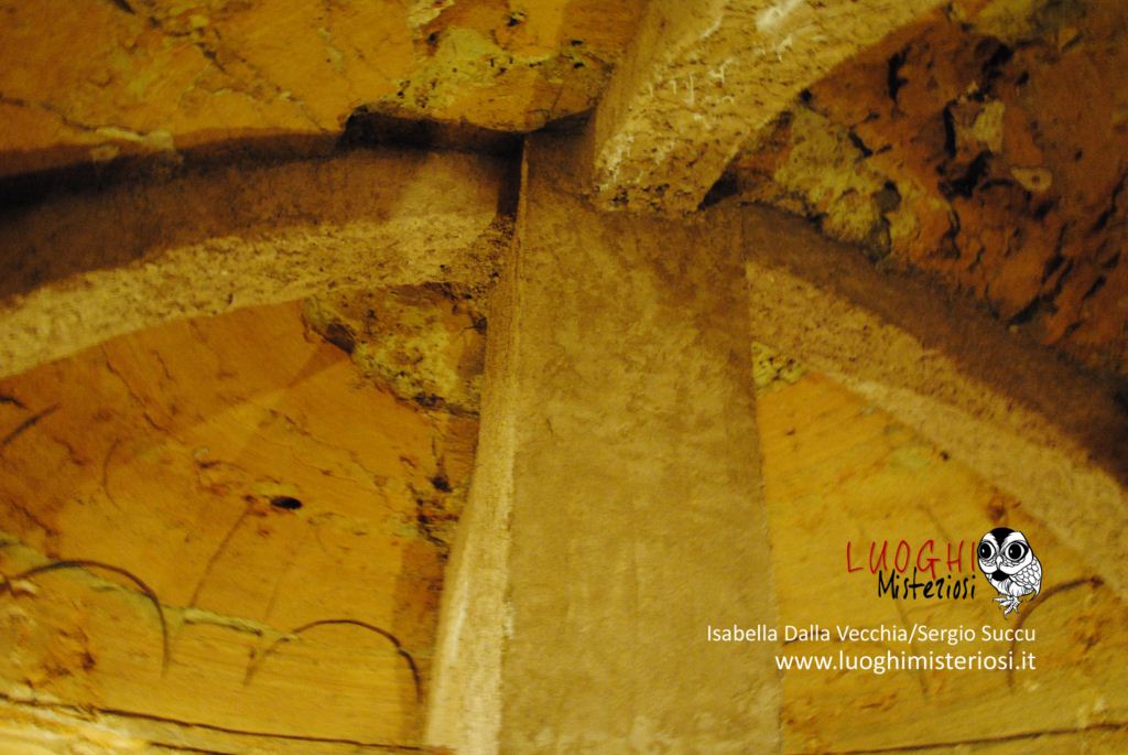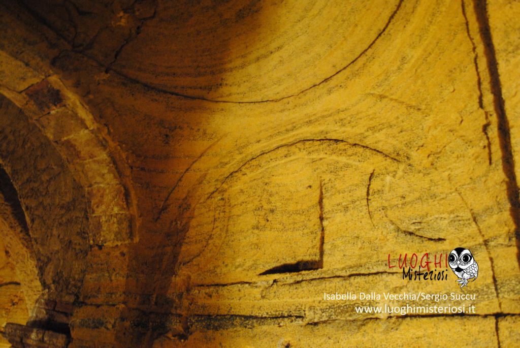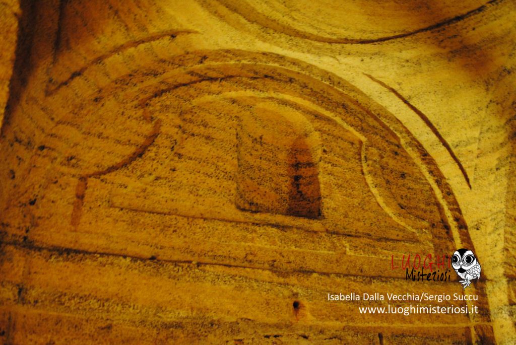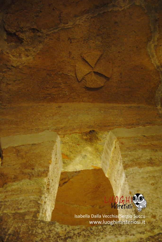 Al centro della cupola sono scolpiti due cerchi concentrici e ai lati dell’entrata due croci.