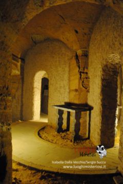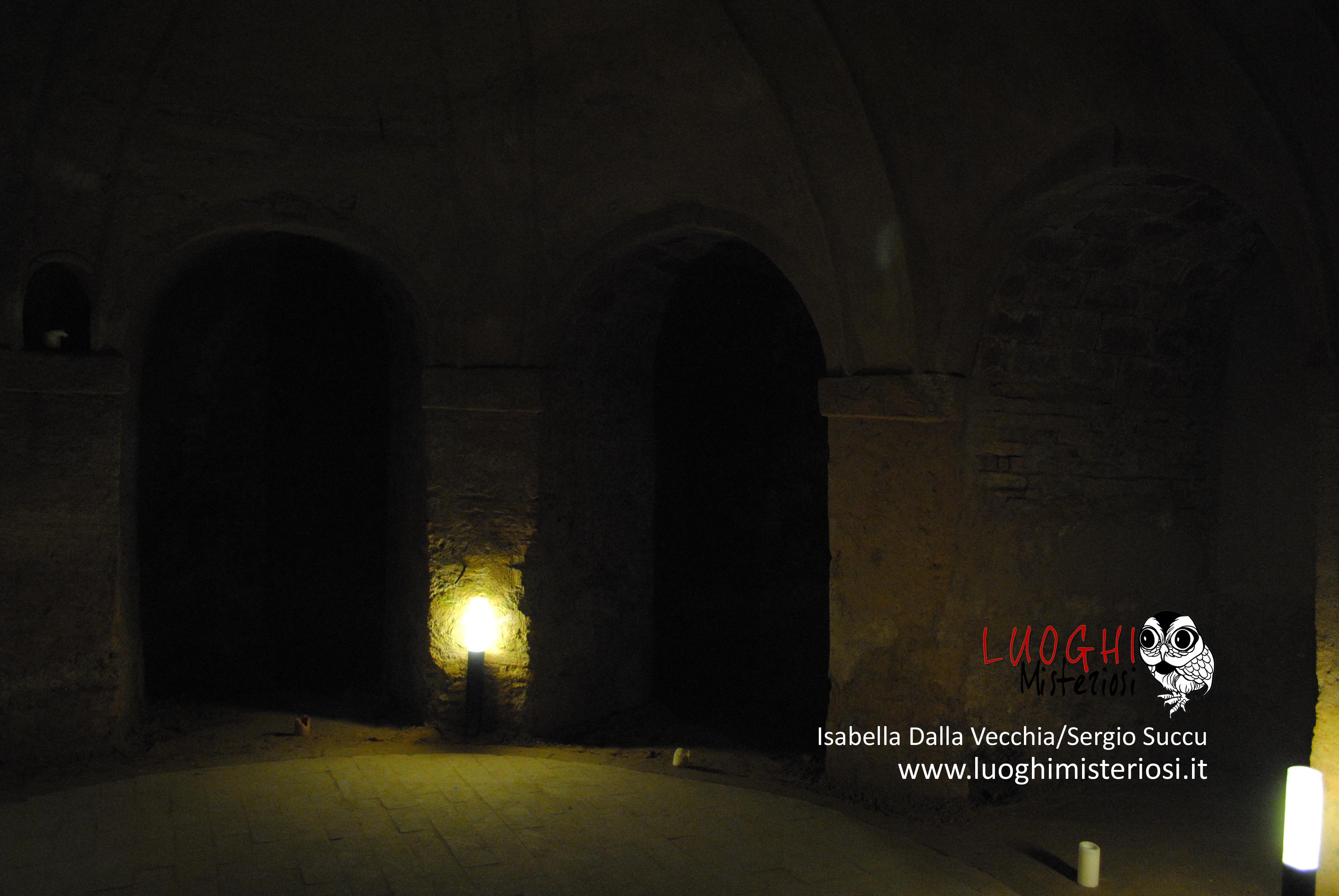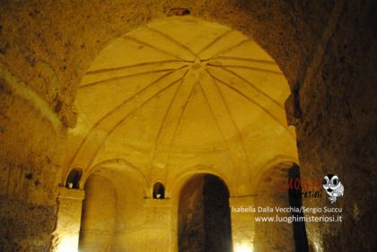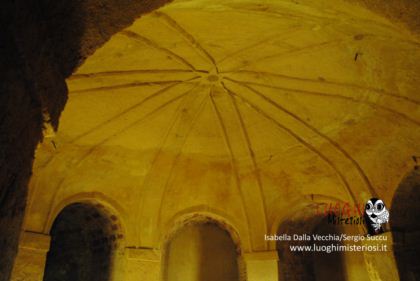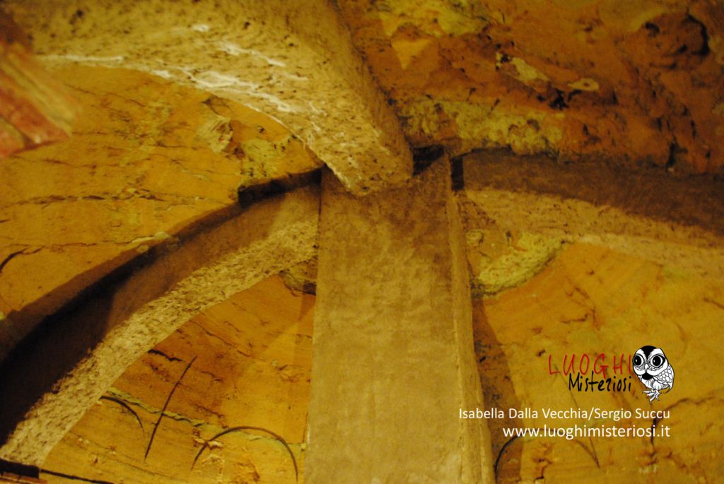 La parte enigmatica del Camerone è il fatto che culmini con una parete in cui si apre una nicchia e due colonne ai lati, elementi che ricorderebbero una zona sacra di un antico tempio (che senso avrebbe in un’ospedale una nicchia con due colonne ai lati?). Forse un antico tempio dedicato al Dio Mitra, i cui culti avvenivano sempre sottoterra o all’interno di ipogei.