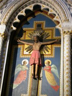 In una delle cinque cappelle della chiesa, la prima a destra, vi è un Crocifisso che il 2 Luglio 1796 avrebbe aperto gli occhi e mosso le labbra.