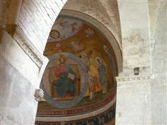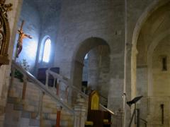 L’interno è a 3 navate con archi ogivali e conserva ancora un bellissimo mosaico sopra l’altare.