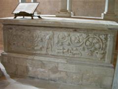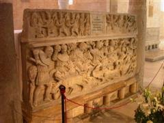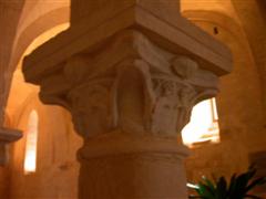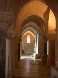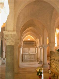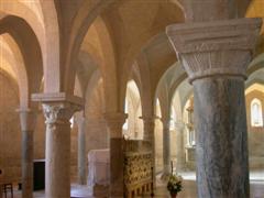 La cripta è stata realizzata utilizzando sedici colonne di precedenti edifici pagani e cristiani.