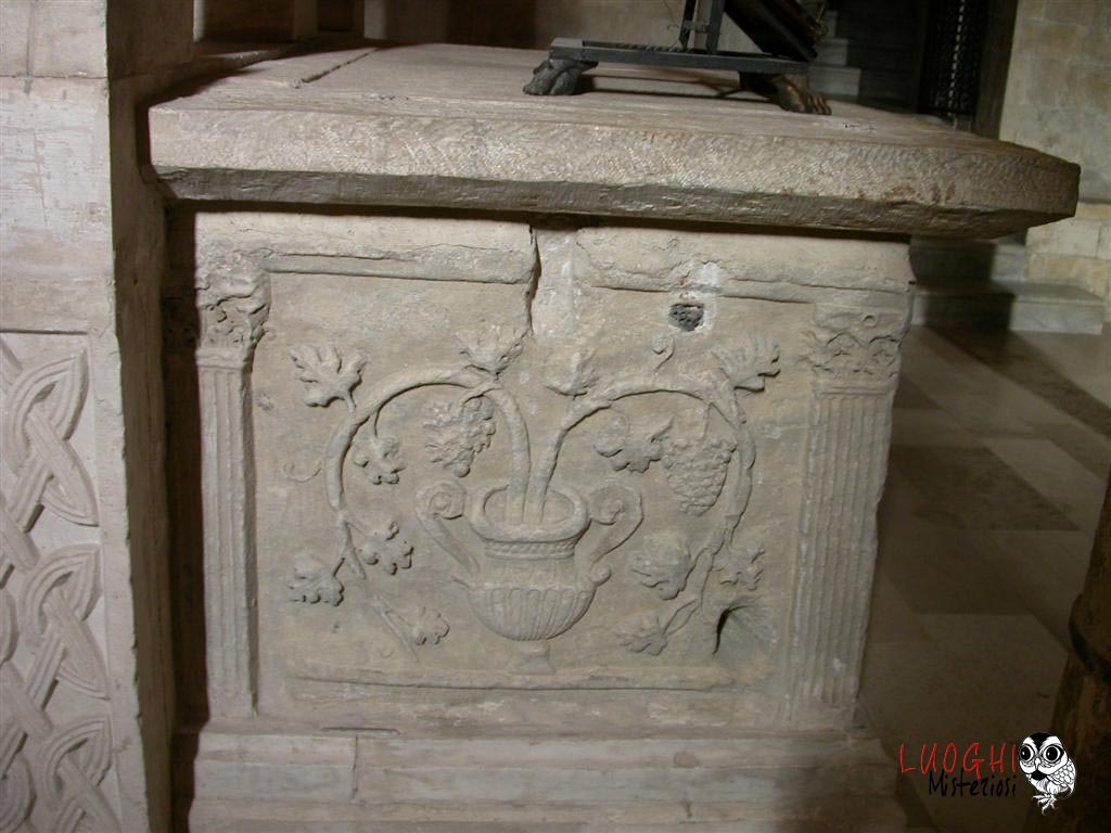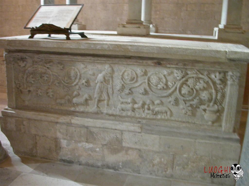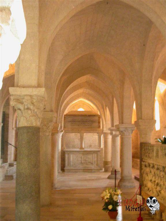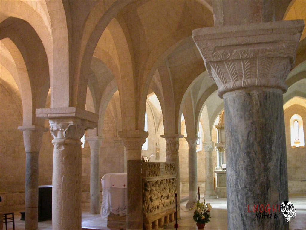 La cripta è stata costruita verso la fine del XII secolo utilizzando materiale di recupero prelevato da edifici romani e bizantini. Le colonne oltre ad essere tutte differenti, sono anche di altezza crescente da sud a nord, mentre parallelamente si allargano gli spazi tra di esse. Sulla crociera centrale vi è il nome dell’autore e la data: Mastro Filippo, 1191.
