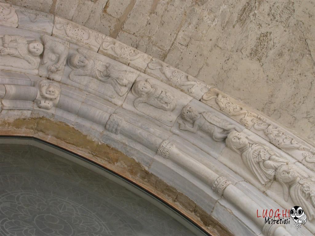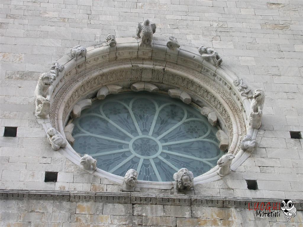 Occorre soffermarsi sul rosone contornato da teste con espressioni grottesche, animali fantastici, una sirena. Esse non sono prive di significato, ma custodiscono un messaggio alchemico ancora indecifrato.