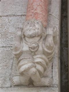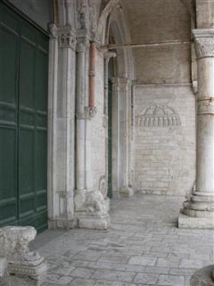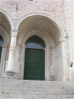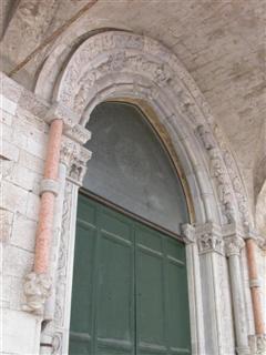 OSIMO (AN) – IL DUOMO DI SAN LEOPARDO / Vi sono due lunghissimi serpenti fronteggiati lungo tutto il portale, formando un vertice gotico, mentre le code terminano in una spirale, quasi a voler in qualche modo ricordare un antico Uro buro (il serpente che si mangia la coda simbolo di infinito) attraverso il quale si accede all’infinito. E’ unico trovare un bassorilievo come questo alla porta di una chiesa.