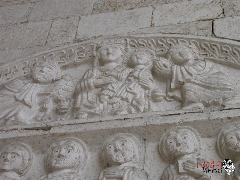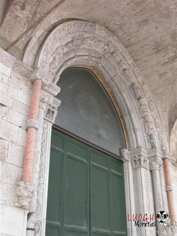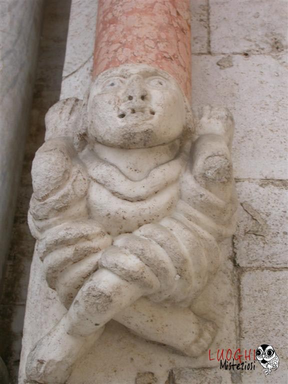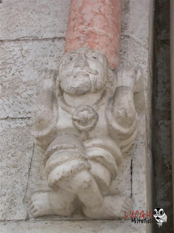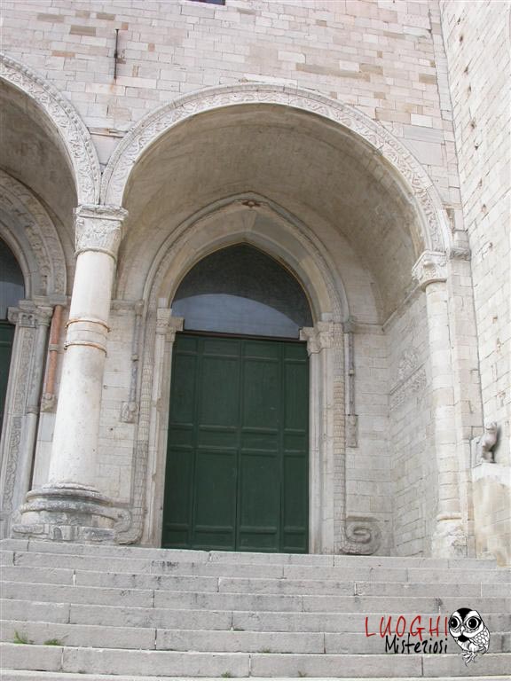 La diffusione dello stile gotico nelle chiese coincide con l’estensione e l’affermazione dell’ordine templare in Italia. L’ordine era particolarmente legato alla figura dell’architetto, un mestiere molto importante sulla terra perché poteva creare edifici sacri “vivi”, una sorta di “congegno” per il contatto con l’Aldilà e con Dio, dato che le chiese erano un compendio di alchimia e numerologia, mai costruite a caso ma sempre seguendo un iter preciso che le portava ad essere specchio ed imitazione del Tempio di Re Salomone. Ecco perché una delle corporazioni di costruttori più importante aveva il nome di “Enfants de Salomon” che faceva capo direttamente all’Ordine del Tempio. Gli altri due ordini si chiamavano “Enfants du Maitre Jacques” e “Enfants du Pere Soubise” che si rifacevano anche ad Hiram. Della prima corporazione apparteneva Mastro Filippo il costruttore della chiesa di Santa Maria della Piazza ad Ancona e colui che ha rifatto in stile gotico la Cattedrale di San Leopardo e Santa Tecla ad Osimo. Non a caso accanto al serpente di sinistra dell’ingresso vi è un busto di Re Salomone con un vaso in mano. Il maestro ha anche rilasciato la sua firma nella cripta, del 1191, e inserita in un cartiglio.
