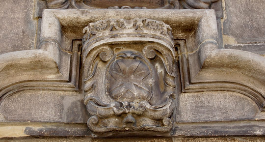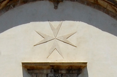 Si noti la croce maltese in rilievo sul finestrone centrale