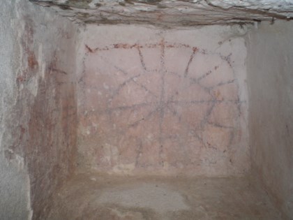 Osservandolo attentamente, si nota che le 4 linee a croce nel disegno della nicchia non si continuano tutte oltre alla prima ellisse, ma solo alcune.e che si incrociano non in un centro preciso, ma rudimentale: segno di un pittore maldestro o volutamente fatto per attirare l’attenzione su chissà quale rituale misterioso? Forse solo alcuni potevano accedere alla Vita Eterna? Forse solo alcuni erano gli eletti , e dovevano essere iniziati a chissà quale percorso?