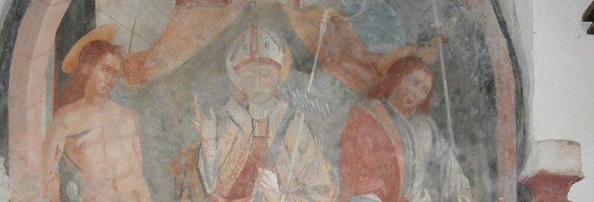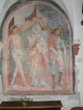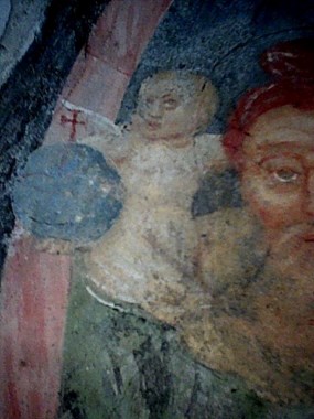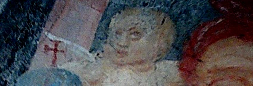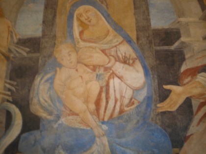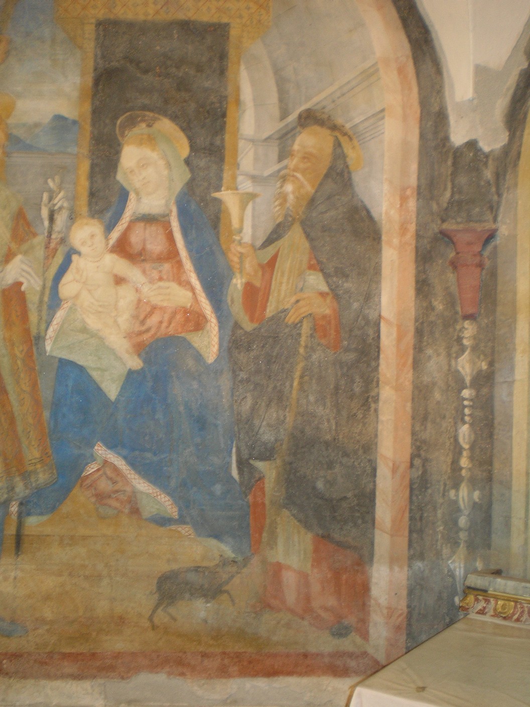 In un affresco ritroviamo la Lactatio Mariae, ovvero la Madonna del latte, Madonna che schizza il latte quale rappresentazione della conversione di san Bernardo di Chiaravalle, sostenitore spirituale dei Templari ed autore della regola dell’Ordine, nobile francese di formazione druidica. Un giorno, passando davanti all’effige di una Madonna del latte le chiese: “Ma tu sei davvero madre?” ed essa le schizzò del latte in viso. Inoltre è visibile la croce sul pomo sorretto dal Bambin Gesù in braccio a san Cristoforo e corrisponde alla croce peduncolata templare.
