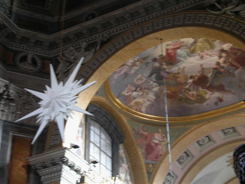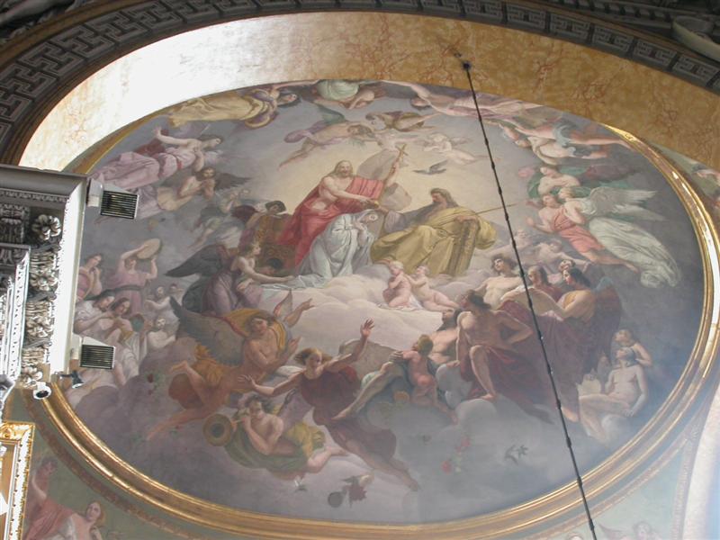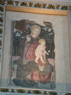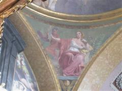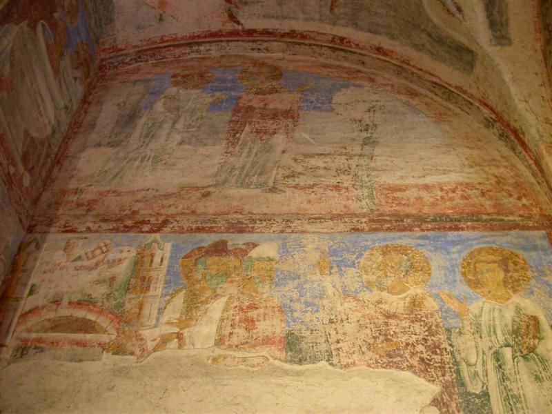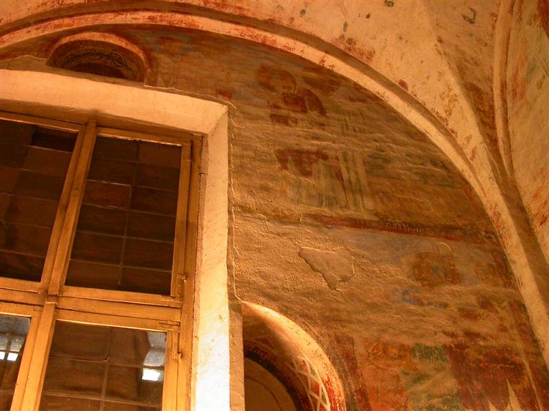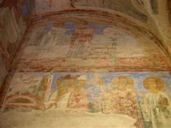 Gli affreschi sono molto rovinati, ma trasmettono ancora un’esplosione di colori molto coinvolgente. Gli angeli con 6 ali sanno trasmettere un senso di etereo e di timore accentuato dal blu di sfondo. Figure pur sempre mostruose che ricordano le volte a botte stellate dell’aldilà delle antiche inquietanti tombe egizie.