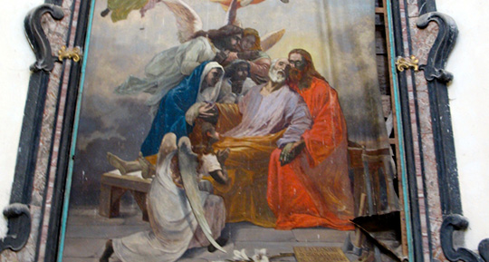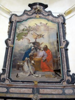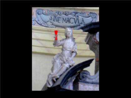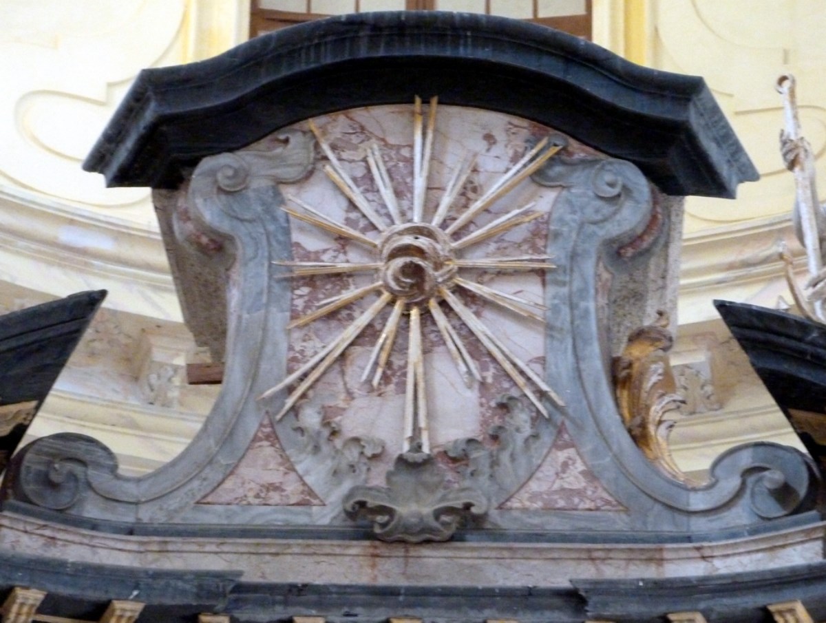 Le proporzioni dell’edificio, mai terminato e mai veramente consacrato, manifestano la presenza in ogni particolare del numero aureo. Il suo impianto suggerisce la volontà di realizzare un’enorme rotonda che, però, non fu mai portata a termine. La sua posizione e le sue direzioni, apparentemente casuali, nascondono inaspettati, coerenti e potenti allineamenti con i fenomeni astronomici e tellurici locali. Altrettanto nei dipinti, nelle cornici affrescate, nelle tarsie, negli stucchi, così perfettamente aderenti ai dogmi, alla tradizione e all’ortodossia, occhieggiano i simboli nascosti e i glifi occulti di una sapienza antica e potente, di quel Graal che una statua sull’altare un tempo reggeva nella destra.