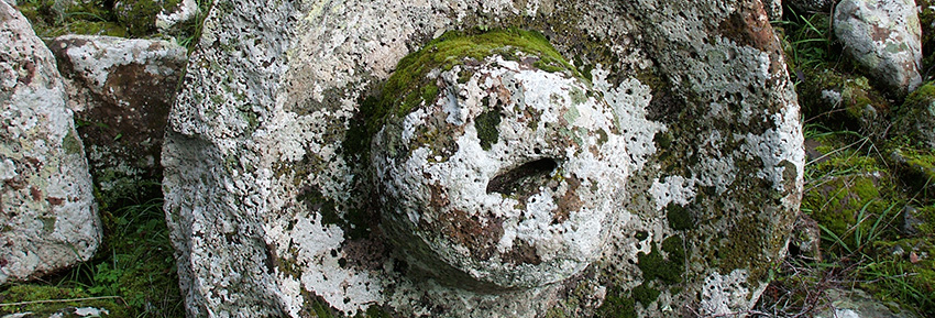 Per quanto attiene le cose “terrestri” ivi giacenti, vero è che avevamo già visto sculture sulla Jara negli anni -80 -90 del secolo scorso e ne eravamo rimasti delusi. Pare infatti che sulla Jara fossero presenti negli anni -70 alcuni scalpellini con famiglie al seguito e che abbiano eseguito sculture del tipo che proponiamo nella foto, ma le altre che proponiamo sono ben diverse da queste Gorgoni.