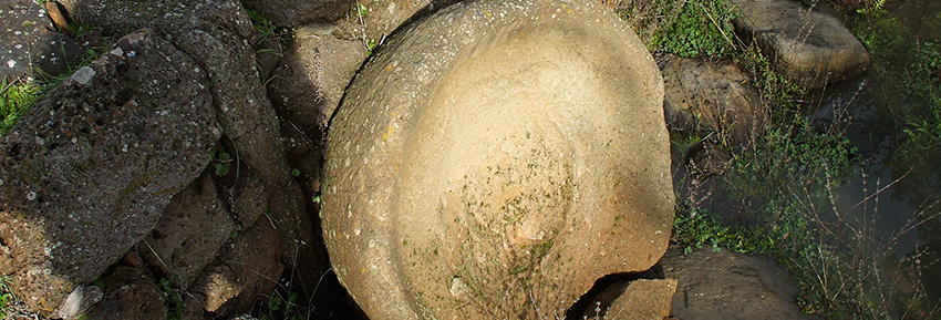 Primavera del 2012. Guidati dall’amico Pierangelo, dopo una segnalazione fatta sei anni fa dall’altro amicodi Oristano, Piero Z., ci avventuriamo su quell’altopiano basaltico che ha visto Leonardo Melis bambino: la Jara. Altre volte abbiamo esplorato questo tavolato che si erge tra la Marmidha e il Sarcidano. Ricovero degli ultimi cavallini selvaggi di una razza simile a quelli delle steppe caucasiche, questo incredibile altipiano conserva tracce di insediamenti antichi di antiche Civiltà. Negli anni cinquanta ci salivamo con tutti i bambini guidati dalle dame della parrocchia per raccogliere il muschio del Presepe. La prima tappa era scontata alla Domu de Janas, “Sa Domu ‘e s’Orku”. Piena di sculture e di coppelle votive.