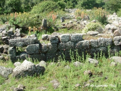 Proseguendo si sale sull’altipiano vero e proprio. Un sentiero ci portava verso i primi Paules (paludi) e verso la foresta dell’interno. Lungo questo sentiero sostavamo spesso a guardare una strada lastricata (vedi foto) che si inoltrava nella vegetazione, direzione Ovest. Questa strada ci ha fatto spesso pensare a un collegamento certo con qualcosa di importante. Oggi finalmente lo sappiamo. Porta verso un altro centro religioso fortificato, abitato da coloro che non vollero accettare la religione del Nuovo Dio imposta con la forza delle armi dei soldati del papa e dei vescovi locali. Non abbiamo mai scordato la frase di papa Gregorio Magno riferita a questa gente: “I Sardi adorano Lignes et Lapides”. Sardi adoratori di piante e pietre dunque. Oggi tale definizione assume altri significati, allora era di un disprezzo immenso. Del resto non era da meno il vescovo di Cagliari “San” Lucifero, il quale soleva affermare che “Jesus non poteva essersi fatto uomo e morire per gente come i Sardi”, sempre riferendosi a questa loro usanza di adorare le pietre e le piante . Chi non accettava di chinare il capo e di inserirsi nella “civile” esistenza, si rifugiava in questi baluardi, vere e proprie città fortificate munite di tutto il necessario per vivere decentemente e autonomamente. In Sardinia ne abbiamo identificate diverse e quasi sempre con questo nome attuale: Santa Vittoria.