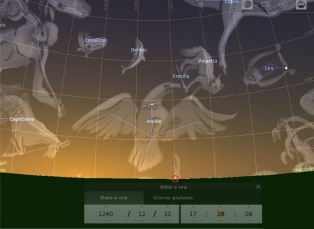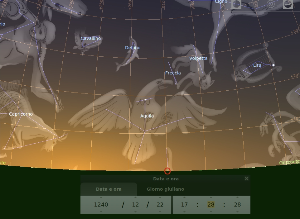 Costellazioni visibili al tramonto dalla torre il 22 dicembre