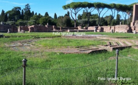 A due passi dal Colosseo, nell’area dei Fori Imperiali, a Roma, si trovano i resti della Domus Flavia cioè la villa di Domiziano imperatore romano dall’81 al 96 d. C. Tra le sue rovine vi è quanto rimane di una fontana ornamentale di forma anch’essa ottagonale i cui muretti bassi riproducono un labirinto con cinque corridoi. Quattro dei suoi lati sono praticamente orientati ai quattro punti cardinali, mentre gli altri quattro alle direzioni intermedie: nord-est, sud-est, sud-ovest, nord-ovest, appunto le direzioni simboliche delle albe e dei tramonti nei giorni dei solstizi. Poichè in età antica il labirinto simboleggiava l’Ade dove dimoravano le anime degli antenati che proteggevano i vivi in superficie, il significato simbolico della fontana era di tipo apotropaico: i tre mondi della visione cosmica pagana, quello sotterraneo dei defunti, quello della superficie terrestre simboleggiato dall’acqua, ed il cielo rappresentato dagli orientamenti astronomici dell’ottagono, erano riuniti ad esaltare le migliori virtù beneaguranti per la dimora dell’imperatore e per quanti ci vivevano. Anche se gli otto lati della fontana-labirinto sono orientati astronomicamente con gli otto punti dell’orizzonte, in realtà presentano uno scarto di poco più di 4 gradi verso ovest. In fatto di orientamento, gli architetti romani spesso non erano così meticolosi e precisi come ad esempio gli Egizi, anche perché a differenza di questi ultimi prendevano come punto di riferimento non le stelle ma il sole a mezzogiorno per individuare il sud, cosa che comportava maggiori probabilità di inesattezze per diversi motivi.
