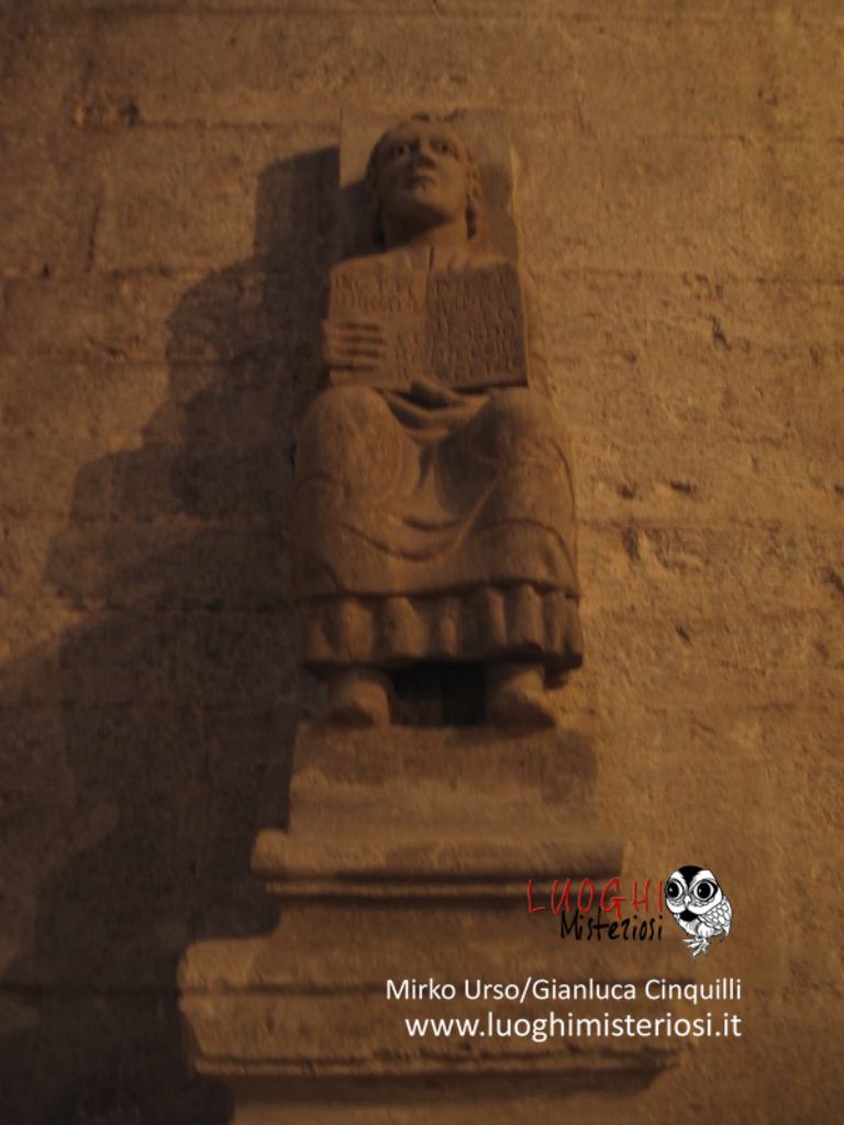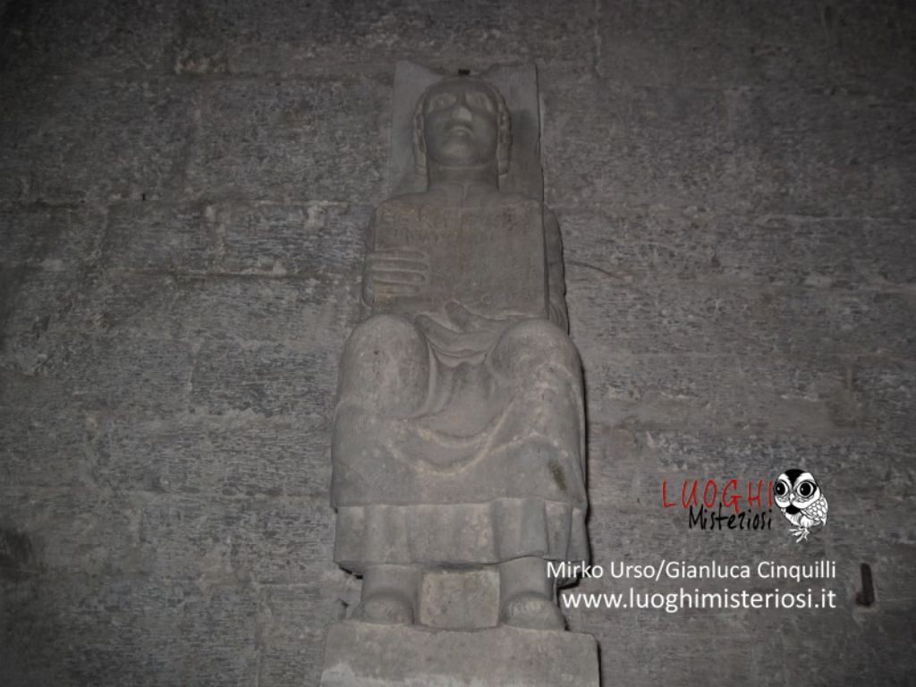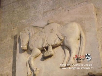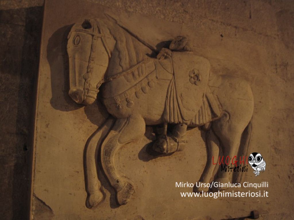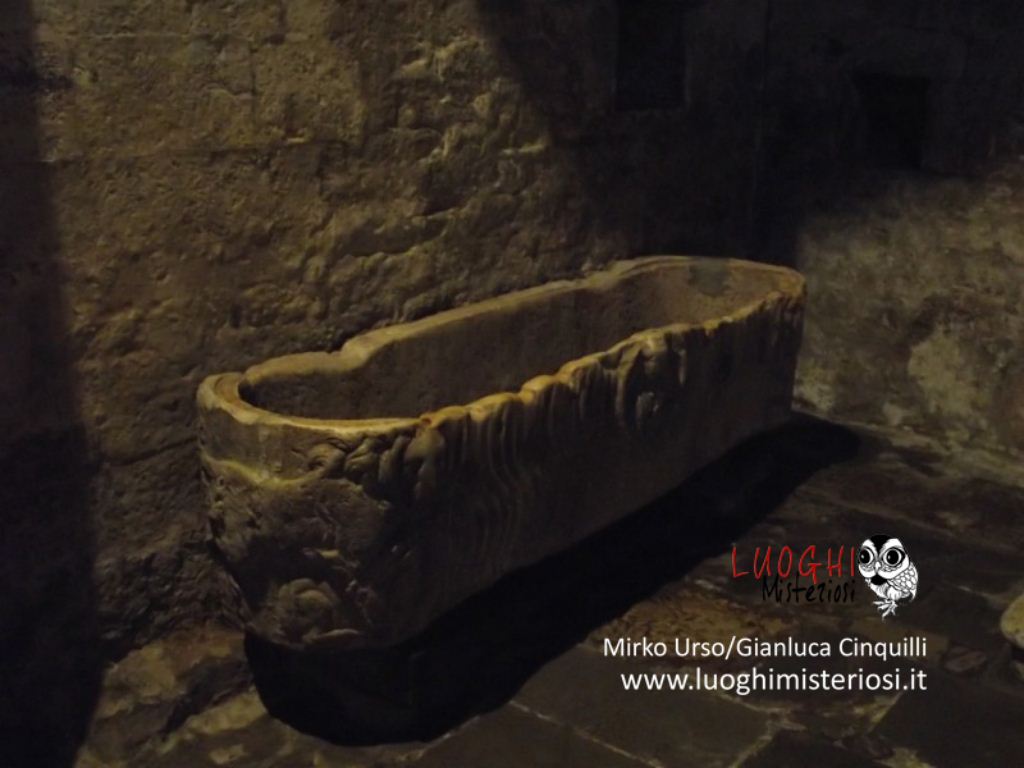 Interessante e alquanto curioso il sarcofago romano appoggiato alla parete, perché vi è rappresentato un bassorilievo di un cavaliere con un grande scudo e lancia e con la testa molto piccola che poggerebbe sulla sella chiamato per tradizione il “Re Pipino”.