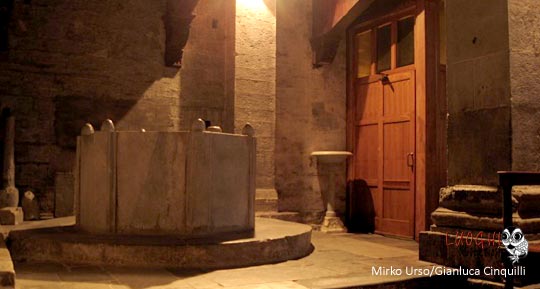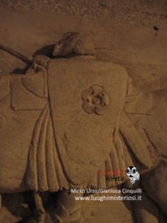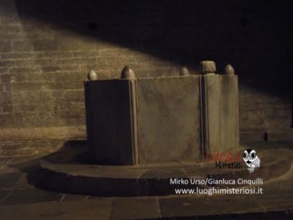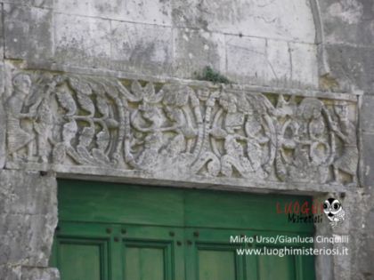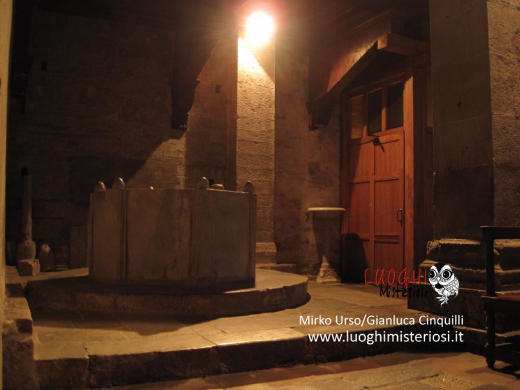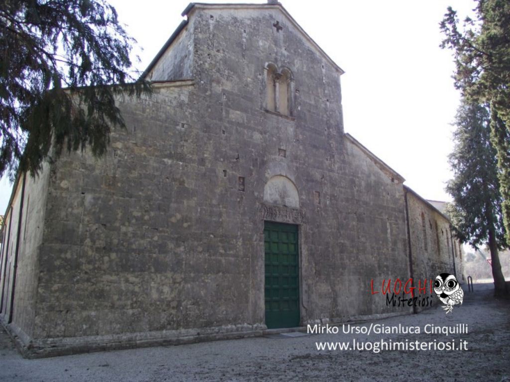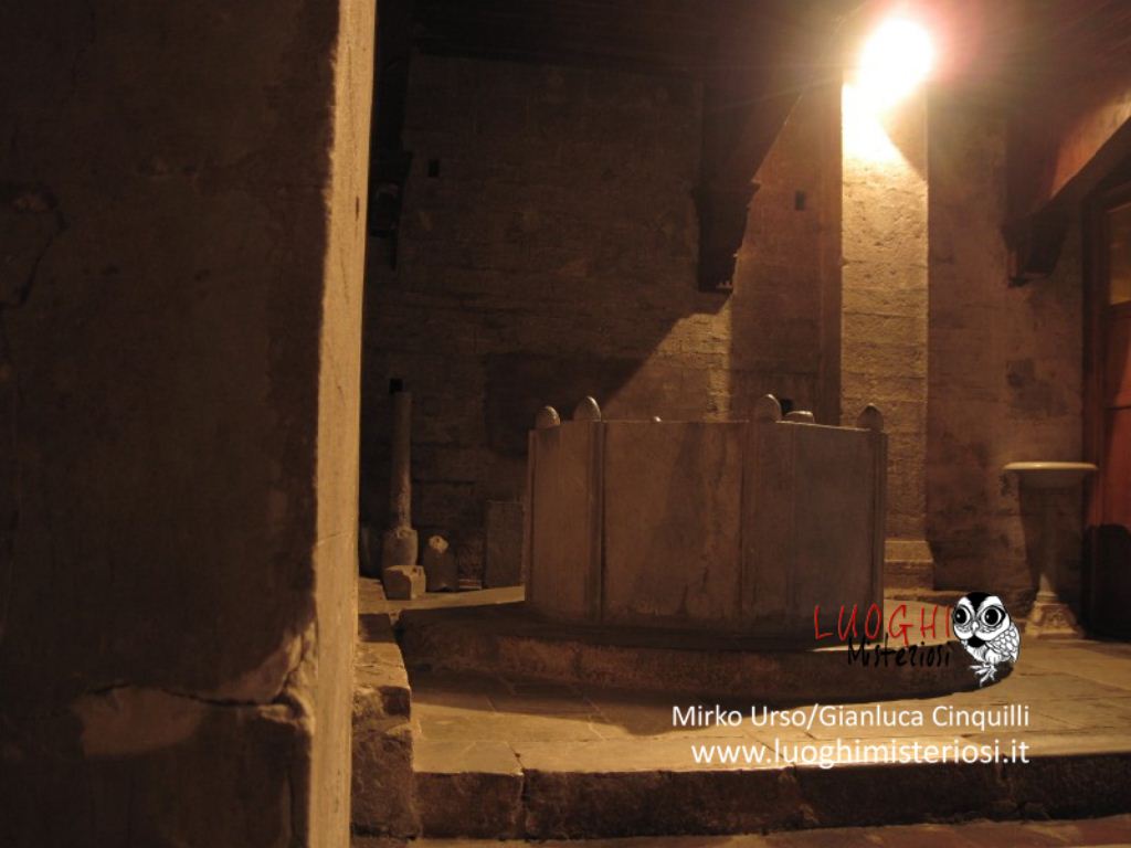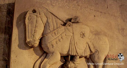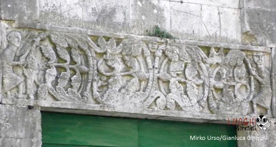 Interessante e alquanto curioso il sarcofago romano appoggiato alla parete, perché vi è rappresentato un bassorilievo di un cavaliere con un grande scudo e lancia e con la testa molto piccola che poggerebbe sulla sella chiamato per tradizione il “Re Pipino”.